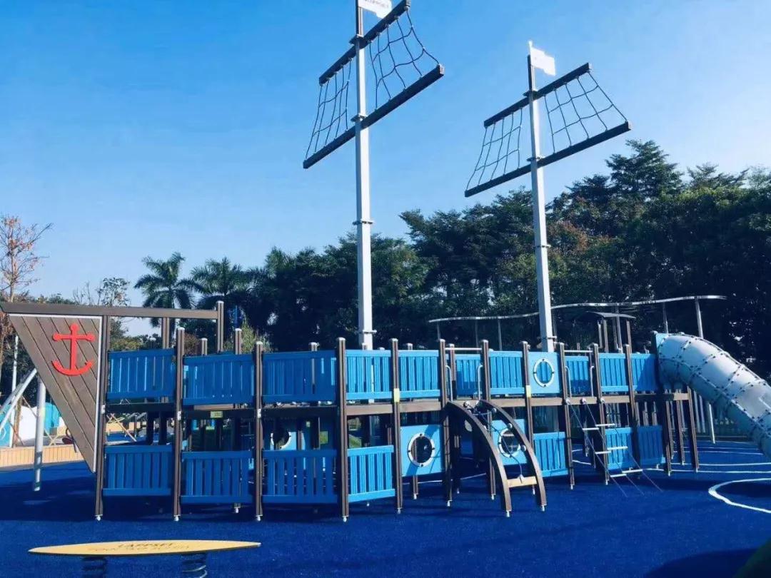 除此之外,该片区域内还设有训练平衡力、灵敏度、弹跳力的综合训练区,现场“巨鲨”和“海盗船”状的游乐设施与海洋主题设计更是“天衣无缝”,使得大小朋友仿佛置身在海洋世界中寻求运动乐趣,真正做到满足0-100岁全年龄段人群的运动、活动、游乐、娱乐需求。
