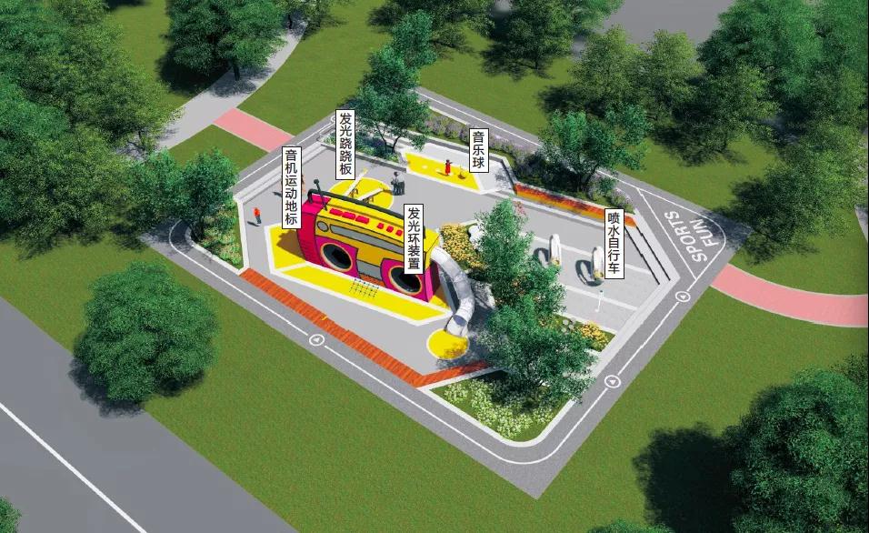 海洋主题、巨型收音机欢乐家庭运动小游园、健身长廊……