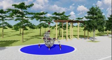 健身长廊占地面积约300㎡,通过3个“点”的设计、建造,替代原有传统成人健身设施,聚集起一条路的力量,去实现运动与人、运动与环境的友善相处;形成一条健身长廊,连接内外,穿越步道。