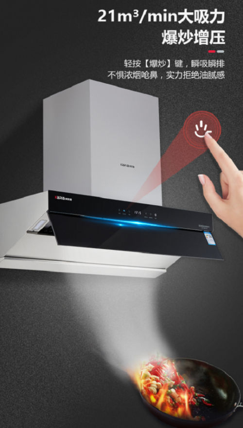 家丽雅电气“大风压系列”KT15Z烟机,在流光溢金的九月火爆上市,用实力开启下半年的极速前进!大风压KT15Z烟机,贴近消费者需求,以专业的技术能力完美攻破消费痛点。同时,带有瞬时增压功能,在爆炒的时候,我们可开启这个瞬时功能,瞬时风量高达21m³/min,是一款大吸力吸油烟机。