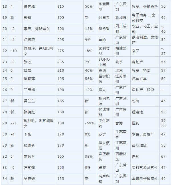 从区域分布来看,粤港澳大湾区共18人上榜,占整张榜单35%,其中深圳10位,佛山5位。北京和深圳是中国女企业家首选居住地,各有10位。胡润百富董事长兼首席调研官胡润表示,从榜单结果来看,大湾区环境最适合中国女企业家创业。