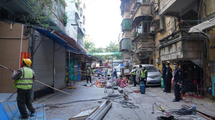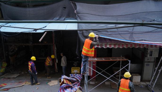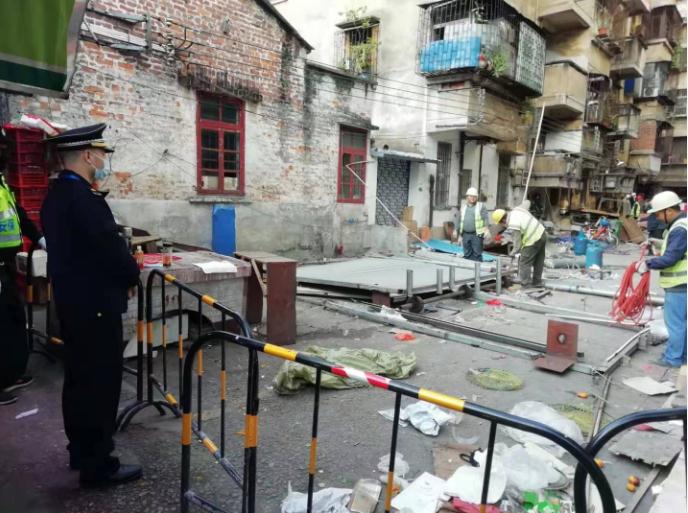 为配合燎原路任围内街小巷提升改造项目,推动任围片区周边环境提升,禅城区城市管理和综合执法局成立违建拆除工作领导小组,开始对华安市场周边进行整治提升。11月30日,禅城区城市管理和综合执法局综合执法大队的执法人员对位于燎原路任围片区妈庙下街52号正立面9间商铺的违规搭建进行依法拆除。