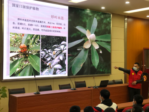12月16日,云髻山省级自然保护区科普进校园活动来到了新丰县第三中学,简单的热场之后,科普讲师带着同学们一起认识自然保护地体系,了解生态保护价值观。随后,科普讲师通过自然科普讲座,图片视频分享,科普展板介绍等多种方式,带领着同学们“走进”了云髻山省级自然保护区。最后,科普讲师带领同学们辨识树叶的外形,学习收集与制作树叶标本的方法,让同学们更加接近大自然、亲近大自然。