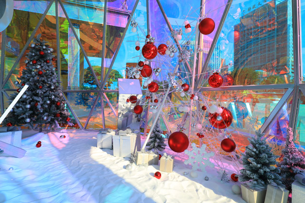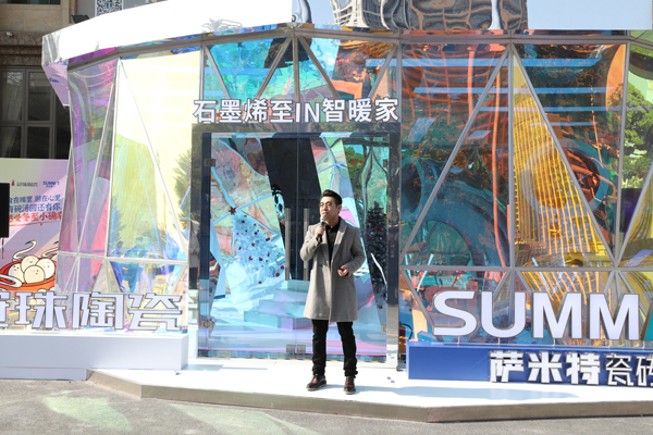 走近后,会发现快闪店坐落在一片“雪景”中,意境满满。加上寒冬季节本来就较低的温度,在视觉效果与体感的双重叠加之下,在场者纷纷感觉寒意十足。而在进入快闪店后,寒意瞬间便消失得无影无踪,甚至犹如重回夏天,这奇妙体验的来源,便是冠珠石墨烯智控发热瓷砖。