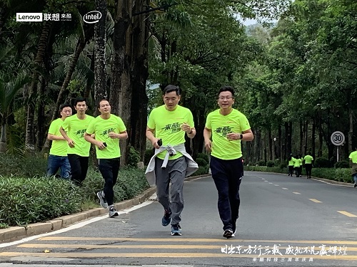 为了延续大联想全力拼搏的精神,在大会结束后,来酷举办了别开生面的团建拓展和跑团活动。数百名来酷平台人员、区域店长共同打卡,分组完成挑战任务;而在来酷跑团的活动中,迎着朝阳,张华先生和周铭先生领着来酷先锋部队,完成了5公里的晨跑活动,展现出热血蓝军的精、气、神!