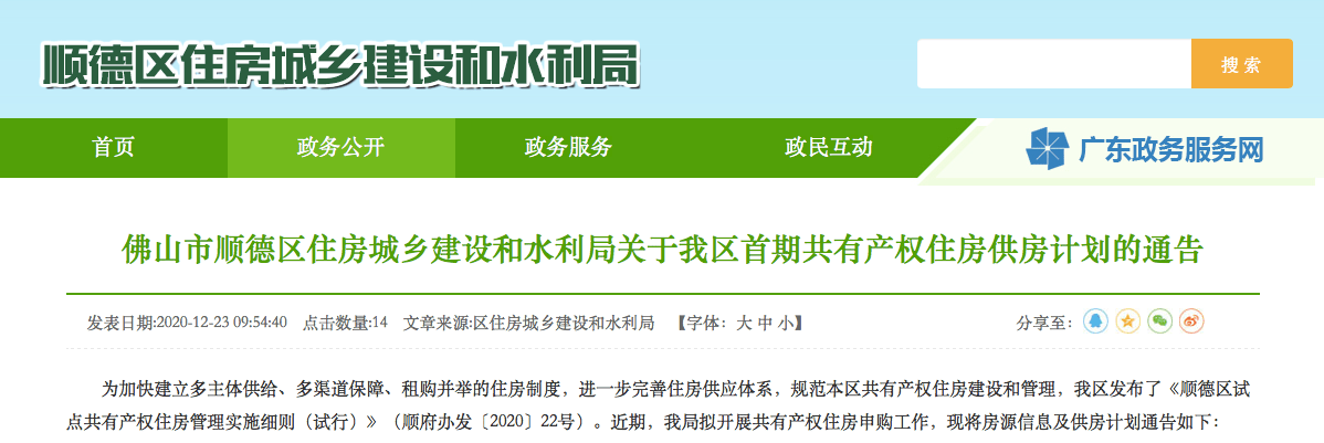 顺德区拟开展共有产权住房申购工作