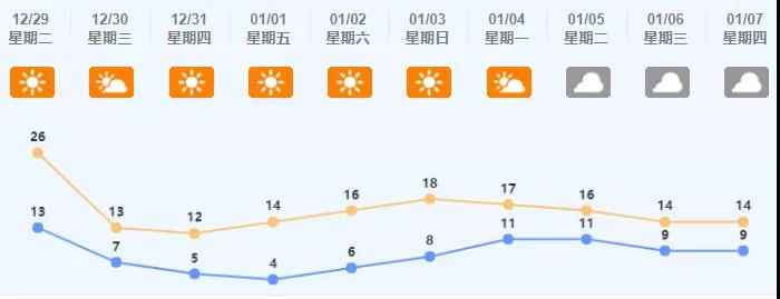 元旦(2021年1月1日)晴天,4到14℃;