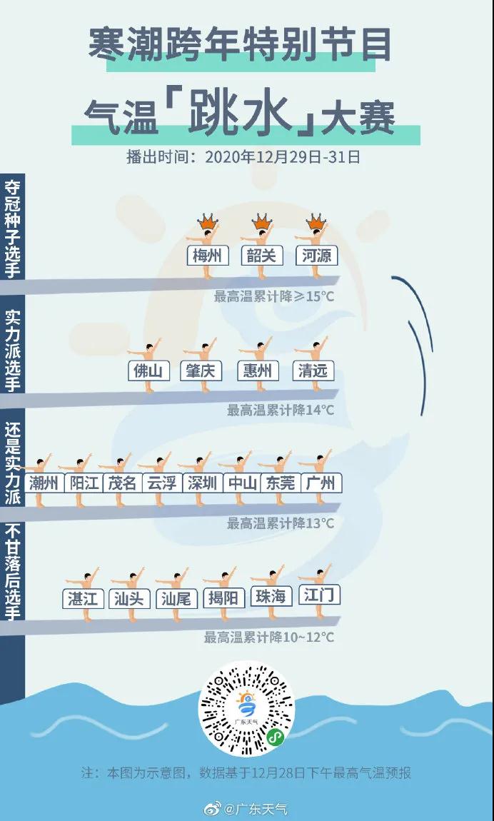 跨年寒潮今日傍晚来袭,佛山气温将“大跳水”,最高温累计降14℃,最低气温4℃。