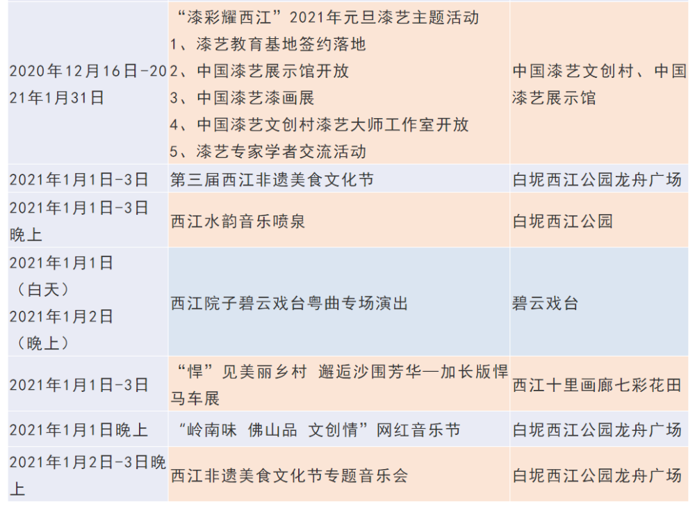 “岭南味 佛山品 文创情”第三届三水白坭西江文创节将在2021年1月1日—3日上演。网红音乐节、西江非遗美食文化节、大型音乐喷泉劲爆音乐晚会……一大波重磅精彩活动将轮番登场,一连三日嗨翻天,吃喝玩乐花样过元旦。