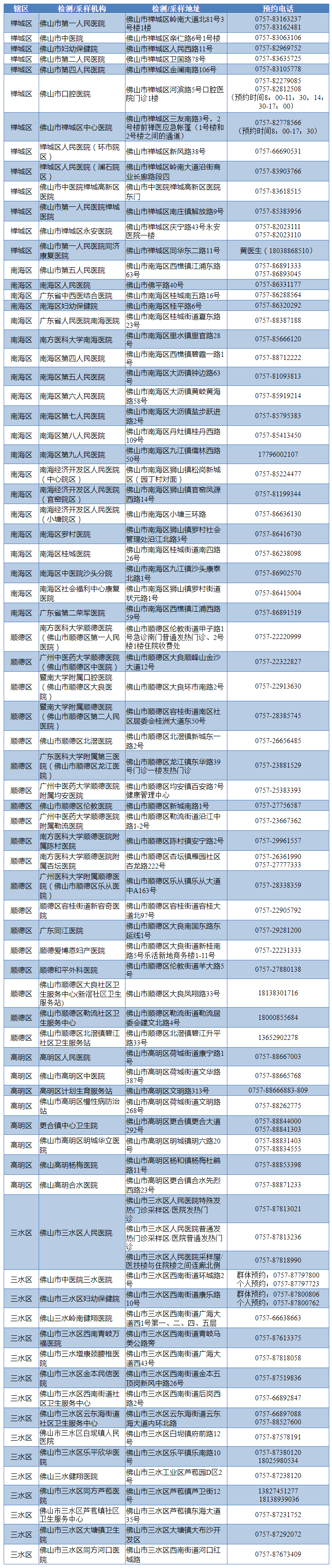佛山市目前已设立76个新冠病毒核酸检测医疗机构服务点,现公布如下,供有需要的市民查阅。