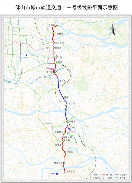 3个新获批地铁项目与既有、在建的地铁项目之间共形成了8个换乘节点,包括佛山西站4、3号线换乘,莲塘站4、2号线换乘,张槎站4、2号线换乘,季华六路站4、3号线换乘,港口路站4、11号线换乘,林岳东站11、2号线换乘,东乐路站11、3号线换乘,陈村北站11号线与广州地铁7号线西延顺德段换乘,进一步提高换乘效率,方便群众出行。