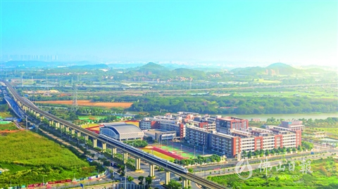 广佛肇城轨的开通,拉近了三水融入广佛都市圈的时空距离。从空中俯瞰,一列列车即将驶入三水北站。
