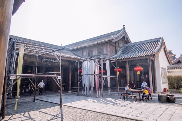 进入影视城,我们步入了一间大宅院,才发现原来这座江南大宅竟是一个大染坊,随处还能看到染布的痕迹。