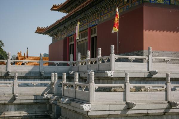 红色的城墙,金色的檐鼎,花色的雕栏,无一不在彰显皇家气势。