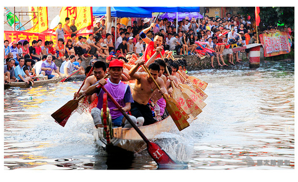 龙舟竞渡是茶基村一项具有传统特色的民俗活动,也是茶基人求福祈愿的集体仪式。人家说抬轿入窄巷无弯转,他们却说叠滘佬扒龙船有弯转。每年端午期间,各村聚集十多条龙船,在狭窄的河道上弯道竞速,上演“水上漂移”。