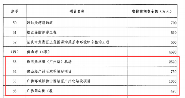 从公示得知,本次涉及佛山共有四个重大项目,依次为珠三角枢纽(广州新)机场、佛山经广州至东莞城际项目(即广州28号线)、广佛环线城际佛山西站至广州北站段项目、广佛同心桥项目,合计安排前期工作经费达4690万元。