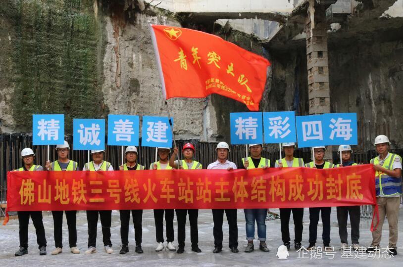 近日,中建四局土木公司佛山地铁三号线3205-2标段火车站站完成主体结构封顶。