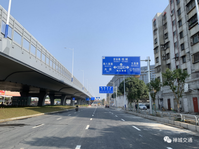 1月23日,禅西大道(塱沙路至张槎路)实现快速化,两个红绿灯已取消,人行天桥已开放通行,极大改善了禅西大道的交通拥堵问题。