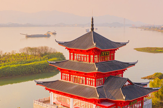 聚贤楼位于三水区白坭镇沙围村村前大道向北的西江边上,聚贤楼外观以红色、复古为主基调的聚贤楼庄重典雅。佛山日报记者王澍摄