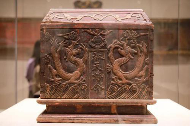 紫气东来·圣旨驾到——圣旨文化展中,展出清代奉天诰命圣旨箱。