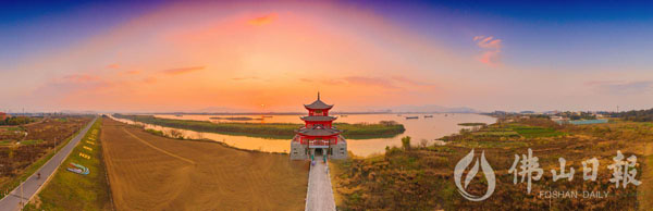 聚贤楼位于三水区白坭镇沙围村村前大道向北的西江边上,聚贤楼外观以红色、复古为主基调,庄重典雅。/佛山日报记者王澍摄