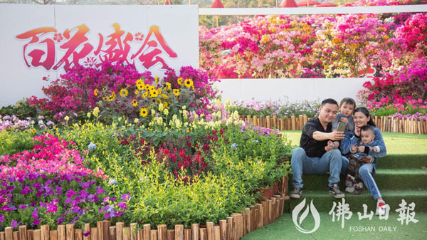 游客在花丛中合影。/佛山日报记者刘浩斌摄