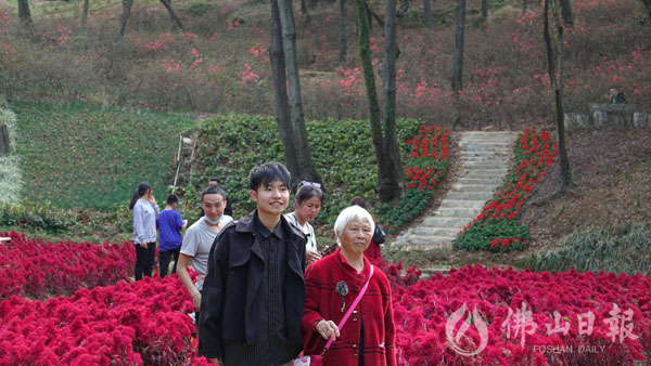 春节正是西樵山的赏花期,这里十里杜鹃、百亩山茶、万株桃花、环山花海,整个山林被渲染得春光旖旎,唤醒了人间最美的时节。周先生穿梭在小径中感受花团锦簇,一家人还在桃花下合影,留下了美好回忆。