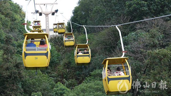 市民乘坐西樵山缆车赏景。/佛山日报记者刘浩斌摄