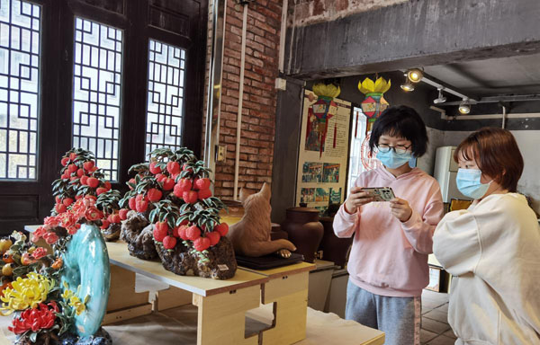 到公仔街赏陶艺。佛山日报记者黎红玲摄