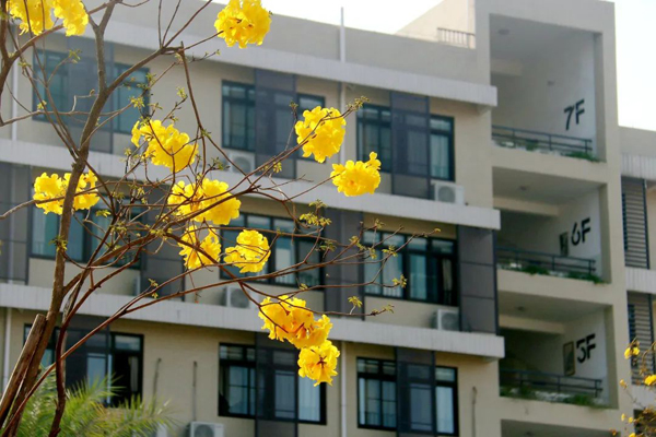 新学期,南海区桂城街道文翰中学校园里的黄花风铃木开得正艳。
