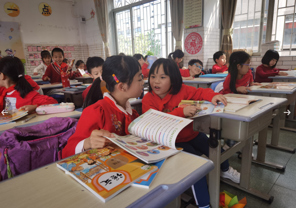 三水区实验小学的同学们收到新课本,对新学期充满期待。