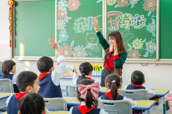 开学首日,三水区思贤小学的同学们正在进行新学期的首个主题班会。佛山日报记者王澍 摄
