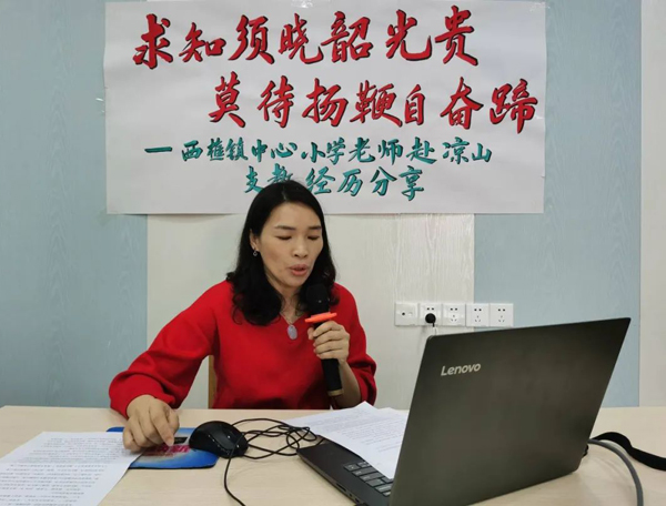 南海区西樵镇中心小学的中国好人陈燕梅给全体师生分享赴凉山支教经历,让学生珍惜当下,珍惜韶光。