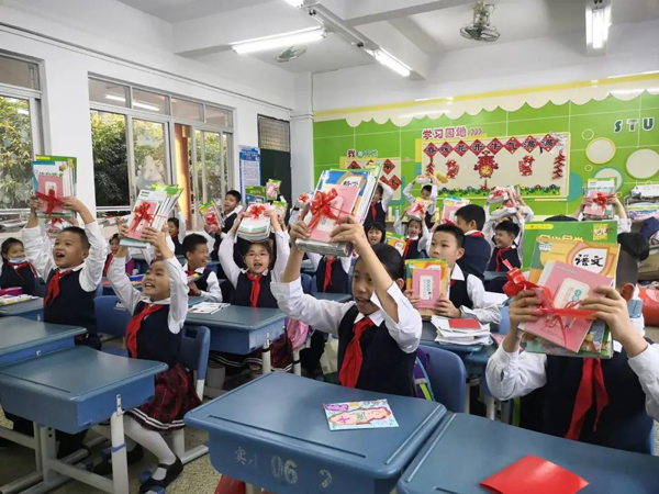 佛山市元甲学校的学生们迫不及待翻看新书。