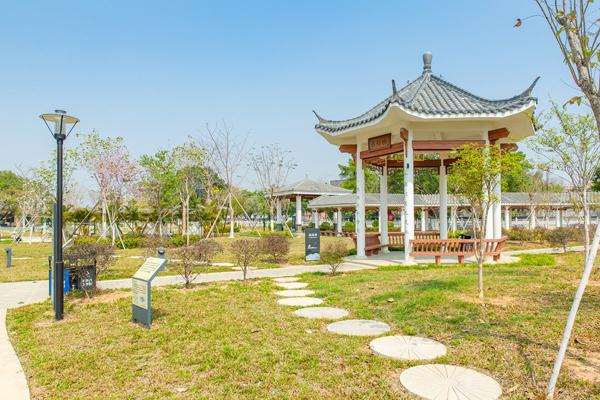 走进容园,能感受到既有广府园林的文化底蕴,也能看到现代建设元素巧妙运用。公园内,竹林幽径、风雨廊、林荫道、兰亭、威武阁、望荷亭等景观古色古香,还有诗韵广场、临水平台等供群众休闲歇息的公共活动区域,每个景观和设施的命名都有着丰富的文化内涵。
