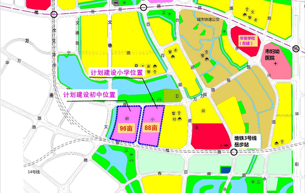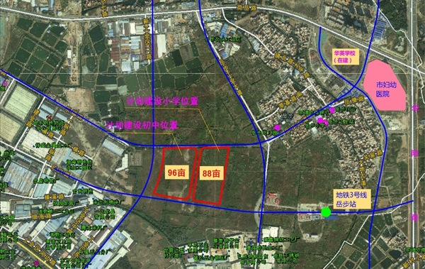 即将启动的学校建设项目位于乐从镇银桂路以北、百顺路以西的教育用地,地块总面积为184亩,其中小学88亩,初中96亩。
