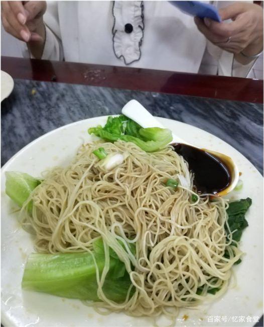 他们家的招牌菜是云吞捞面,12元一份,有一些老主顾经常来吃,说以前这碗面才1.5元一碗,虽然价格涨了不少,还好味道不变,还是以前的老味道。捞面就是拌面的意思,和一般的拌面相比,广东的捞面更加筋道,口感更丰富,先是煮好的云吞放在碗底,然后捞出竹升面放在云吞上面,接着是新鲜翠绿的生菜和一些秘制的酱料,领上去之后就可以开吃了,会配一碗例汤解渴。