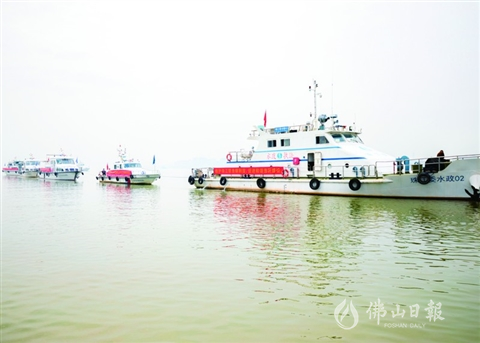 昨日,珠江渔政特编执法船队沿着西江流域九江段开展联合巡航执法。图/佛山日报记者周春