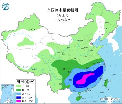 据中央气象台3月1日发布的中期天气预报,3月上旬,影响我国的冷空气活动较为频繁,北方地区气温起伏多变,华南北部等地区多降雨天气,主要降雨时段在3月1日、3日~6日、8日前后和10日前后。