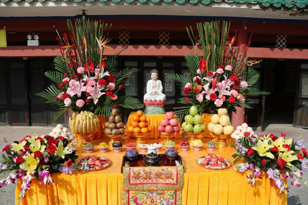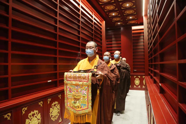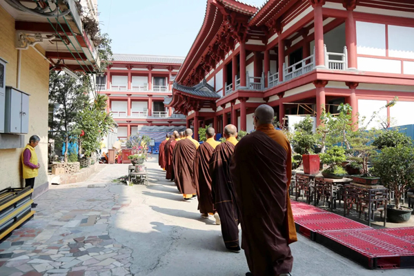 2021年2月20日,仁寿寺法师齐聚功德堂前,举行庄重的牌位搬迁仪式。供桌上设以种种香、花、果、上味佳肴奉供,主法法师拈香礼拜。