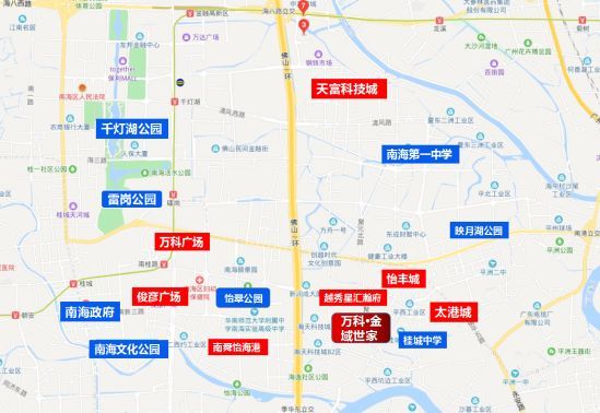 周边有怡丰城、南海万科广场、中海环宇城等配套设施。2公里范围内餐饮娱乐、生活休闲、文教医疗等配套一应俱全。