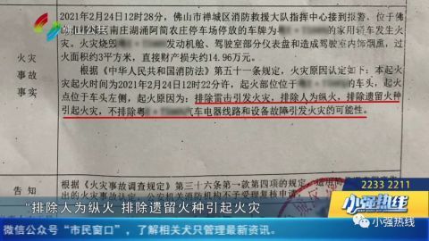 禅城区消防救援大队就给出了“火灾事故简易调查认定书”,其中认定结果写明:“排除人为纵火,排除遗留火种引起火灾,不排除汽车电线路和设备故障引发火灾的可能性”。