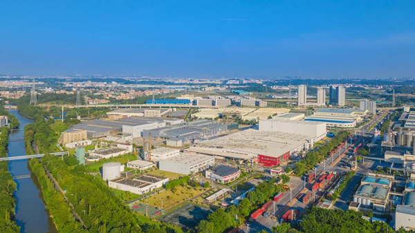 俯瞰中国(三水)国际水都饮料食品基地内的可口可乐装瓶商生产(佛山)有限公司。/佛山日报记者王澍摄