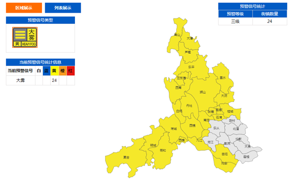 截至今日9时,根据佛山市气象台发布消息,三水区、南海区、禅城区、高明区、顺德区均安和杏坛大雾黄色预警信号正生效。