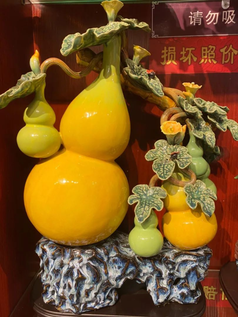 由于“葫芦”与“福禄”谐音,它是富贵的象征,代表长寿吉祥,民间以彩葫芦作佩饰,就是基于这种观念;其枝茎称为“蔓”,与“万”谐音,葫芦与它的茎叶一起被称为“福禄万代”。另外因葫芦藤蔓绵延,结子繁盛,它又被视为祈求子孙万代的吉祥物。谚语:“厝内一粒瓠,家风才会富”,意思是说,在家里摆放一个葫芦,才会发财、富有。