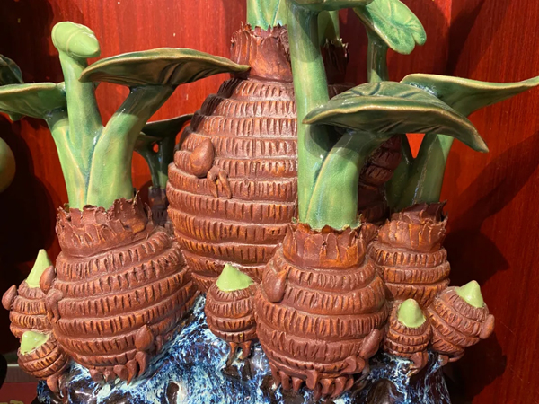 芋头植株的茎块较大,多为卵形或圆卵形,数量较多,大约有8个,因而有多子多福的象征意义。将陶瓷芋头摆放于室内,有着家庭和睦和子孙多福的美好寓意。此外,芋头有“余头”的谐音,人们为了讨个彩头,希望好日子有富余。