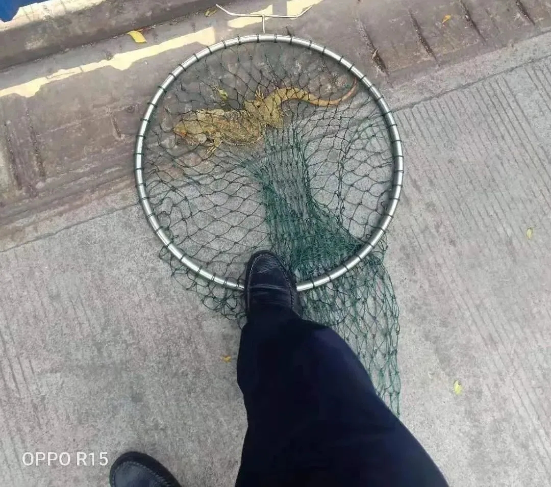 看准机会快速用网兜将蜥蜴罩住