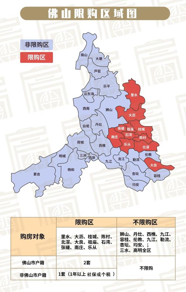 从最基本的来说,自2017年佛山划分限购和非限购区以来,截止2020年12月,佛山楼市限购区域基本未有大变化,具体分如下图: