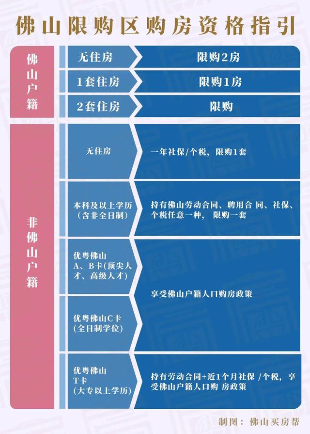 同时,有关佛山本地户籍与外地户籍人士限购区购房资格的条件方面,小编也整理了一张清晰的表格,具体情况如下: