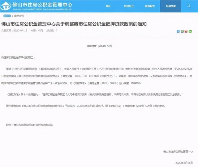 自去年4月15日,佛山公积金中心发布《佛山市住房公积金管理中心关于调整我市住房公积金抵押贷款政策的通知》。